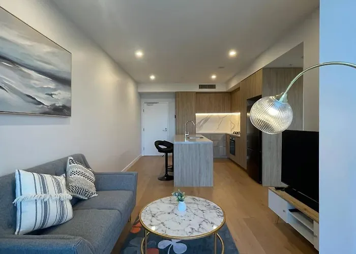 The Pavilion Convention Centre befindet sich in einer 5 Fußminuten Entfernung von dem 55 m² großen Apartment, während Skilled Park circa 7 Kilometer von hier entfernt liegt. Außerdem ist Einkaufszentrum Pacific Fair Shopping Centre in 9 Minuten zu Fuß zu erreichen.